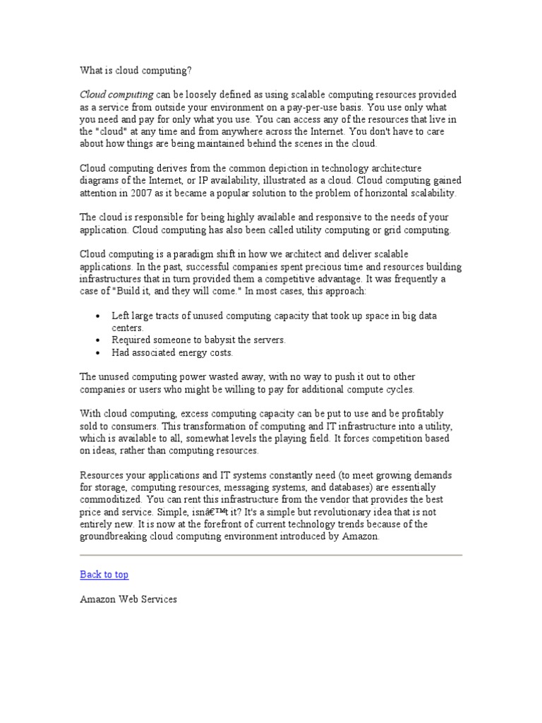 Cloud computing can be loosely defined as using scalable computing resources provided
