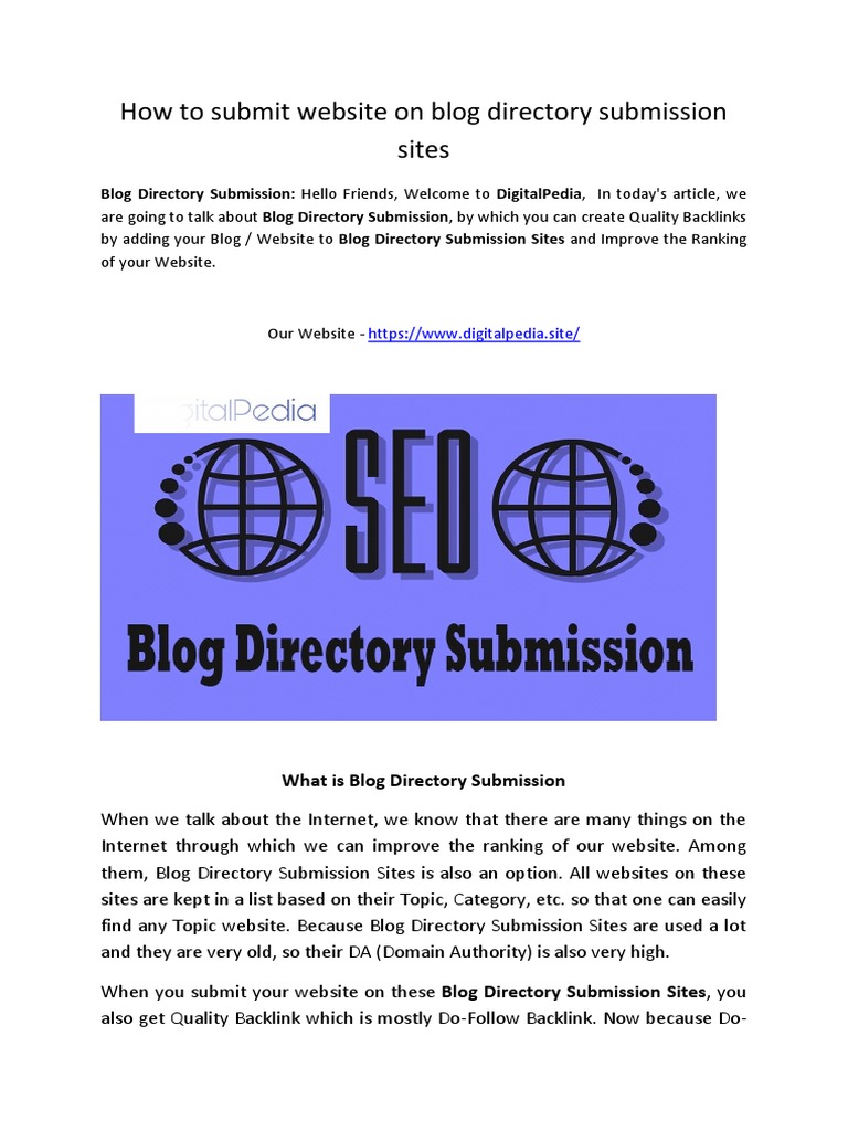 Blog Directory Submission: Hello Friends, Welcome to DigitalPedia, In today's article, we