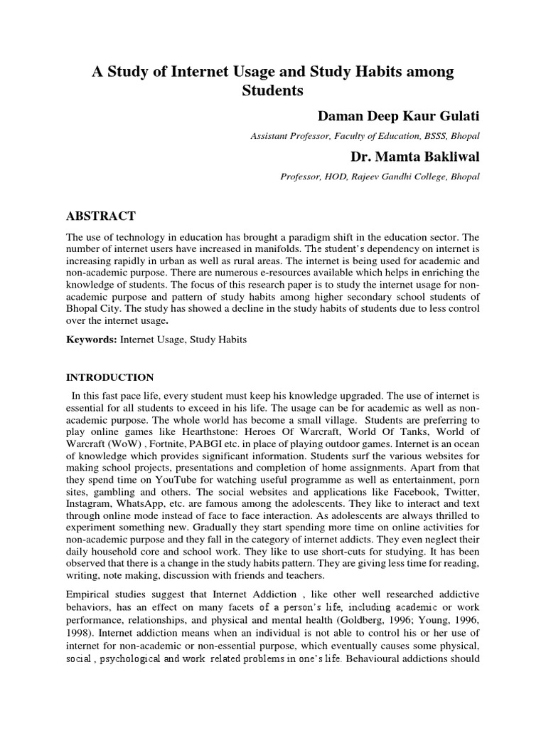 relationship between excessive internet usage and study habits. It is the responsibility of the