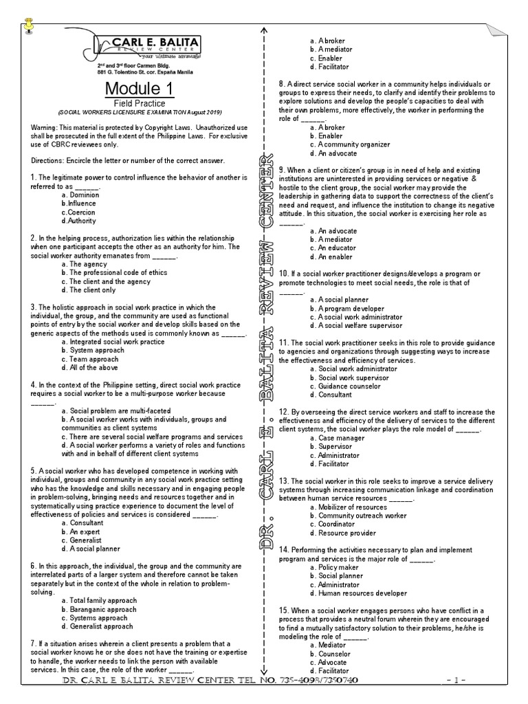 (SOCIAL WORKERS LICENSURE EXAMINATION August 2019) their own problems, more effectively, the worker in performing the