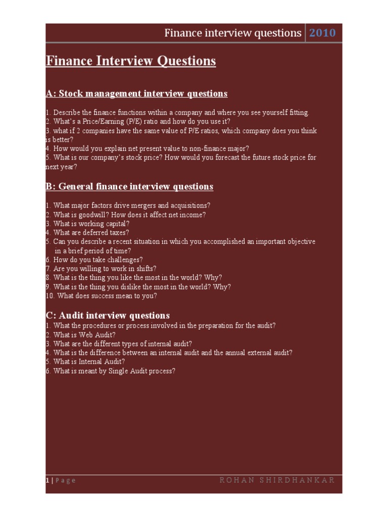 Finance Interview Questions