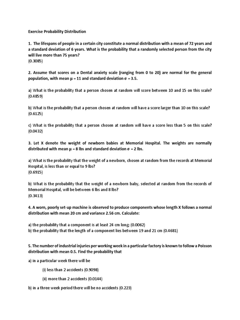 distributed with mean µ = 8 lbs and standard deviation σ = 2 lbs.