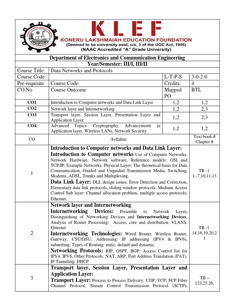 CO1 Introduction to Computer networks and Data Link Layer 1,2 1,2