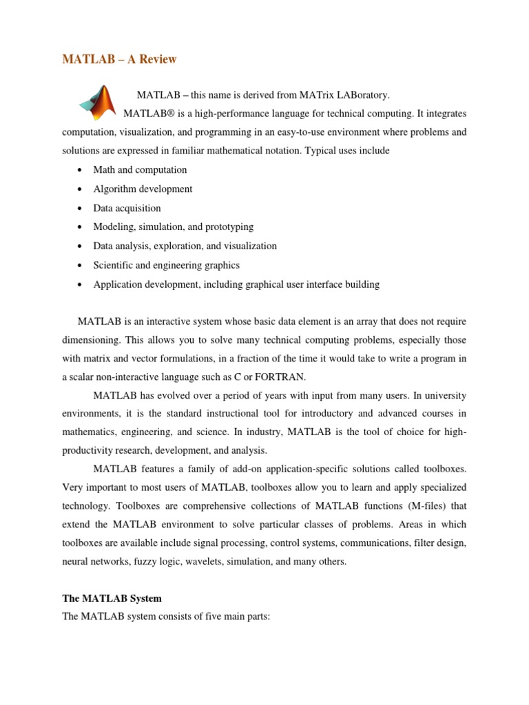 mathematics, engineering, and science. In industry, MATLAB is the tool of choice for high-
