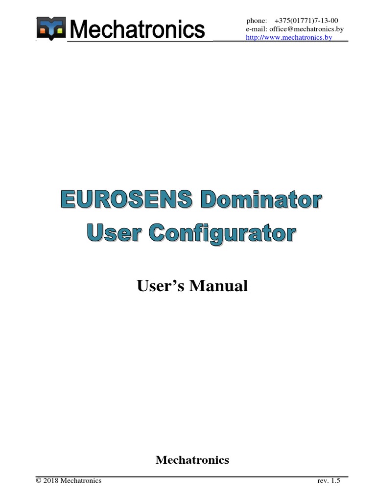 "EUROSENS Dominator User Configurator" Software (hereinafter configurator) is used to