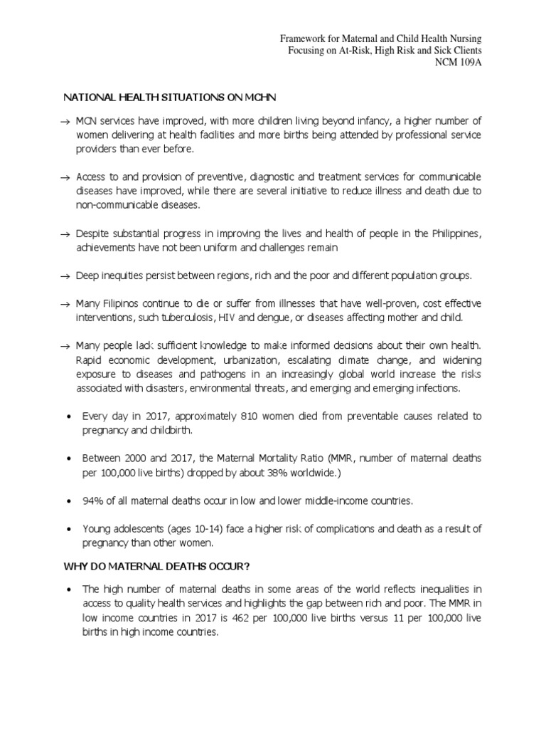 NATIONAL HEALTH SITUATIONS ON MCHN