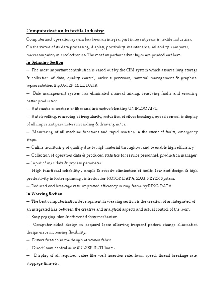 Computerization in textile industry: