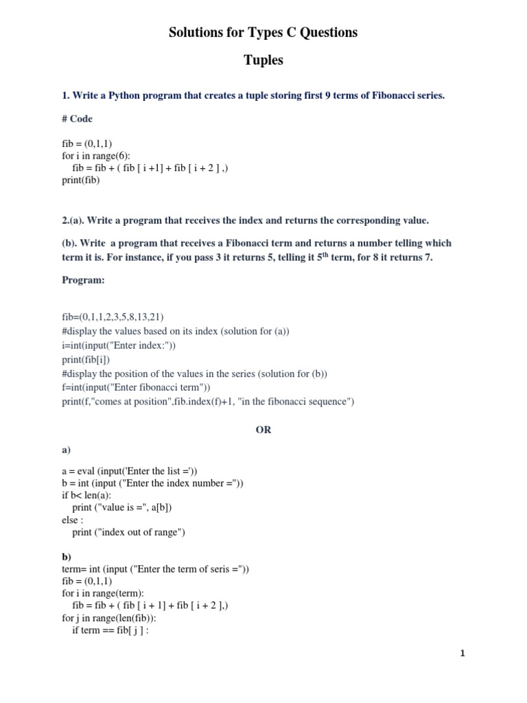 1. Write a Python program that creates a tuple storing first 9 terms of Fibonacci series.