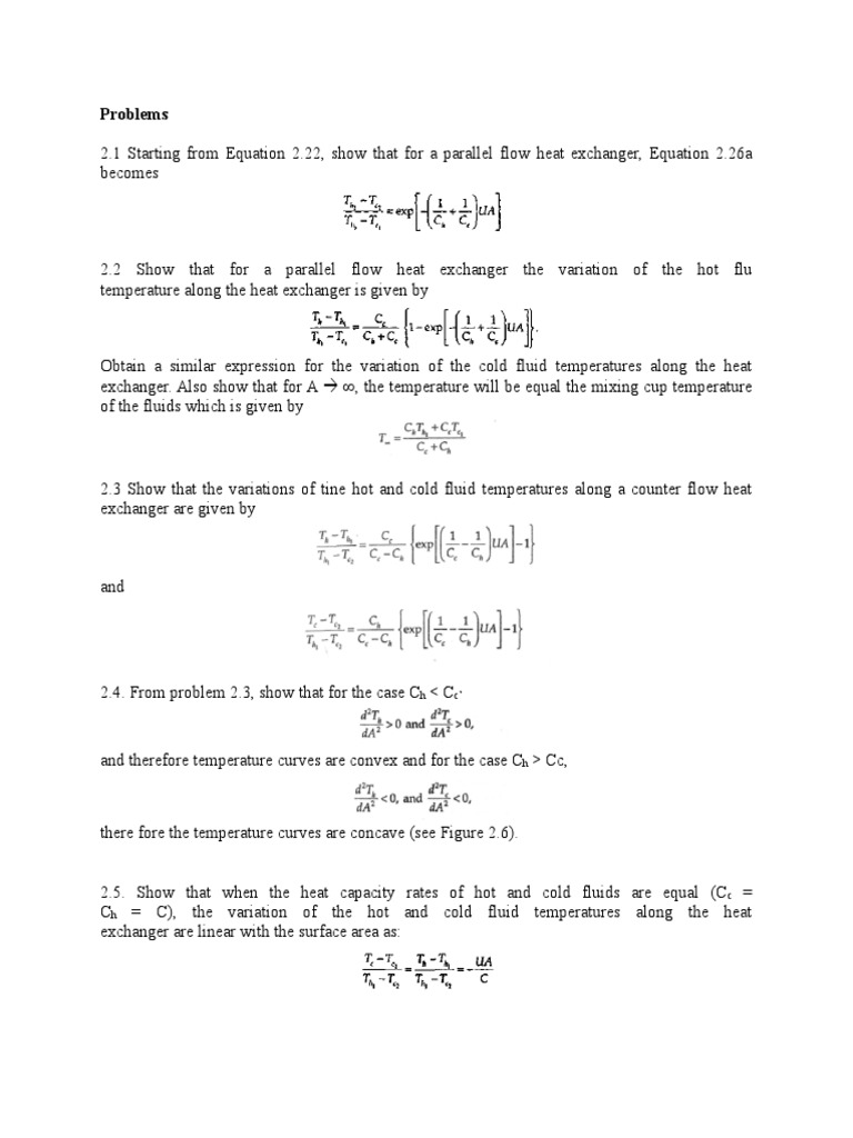 2.1 Starting from Equation 2.22, show that for a parallel flow heat exchanger, Equation 2.26a