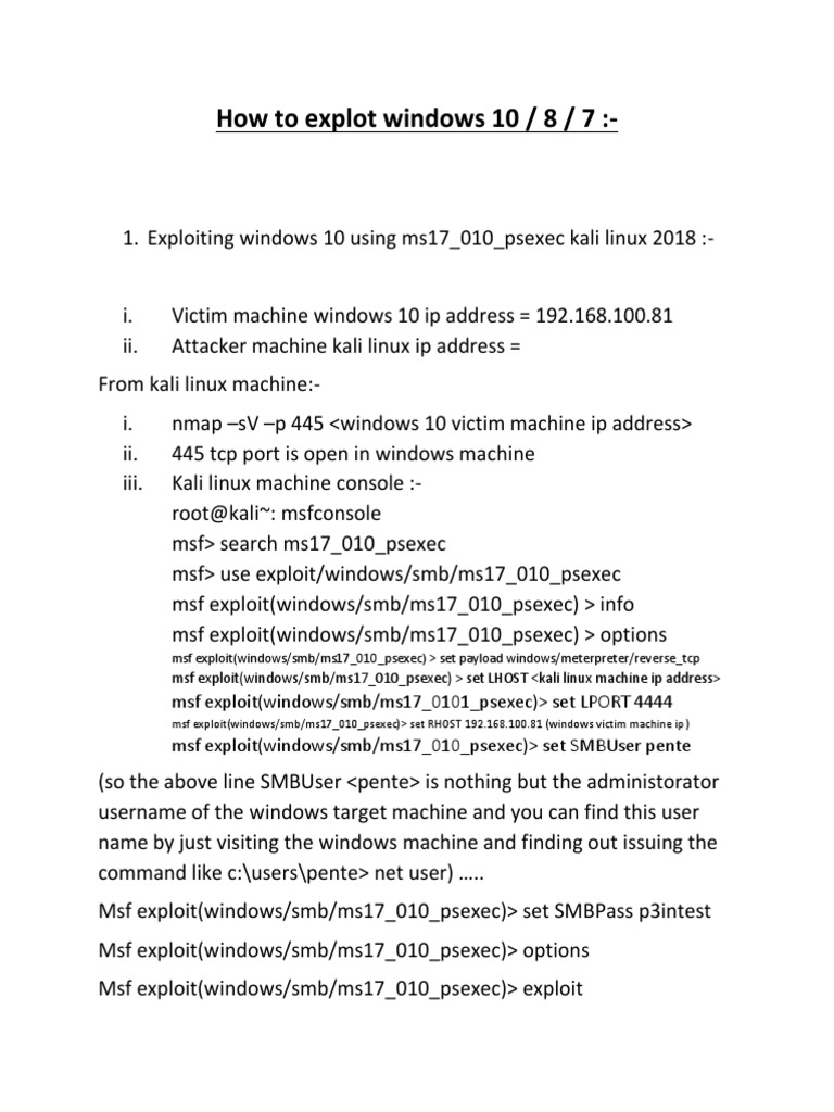 i. nmap –sV –p 445 <windows 10 victim machine ip address>