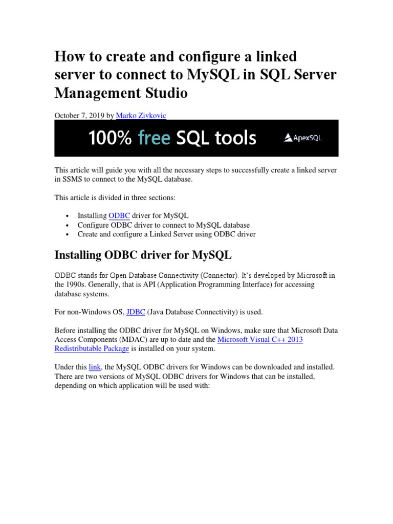 to MySQL database has been configured, configuring Linked Server in SSMS to connect to
