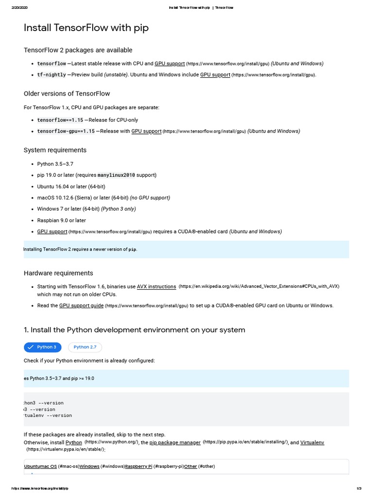 2/20/2020 Install TensorFlow with pip | TensorFlow