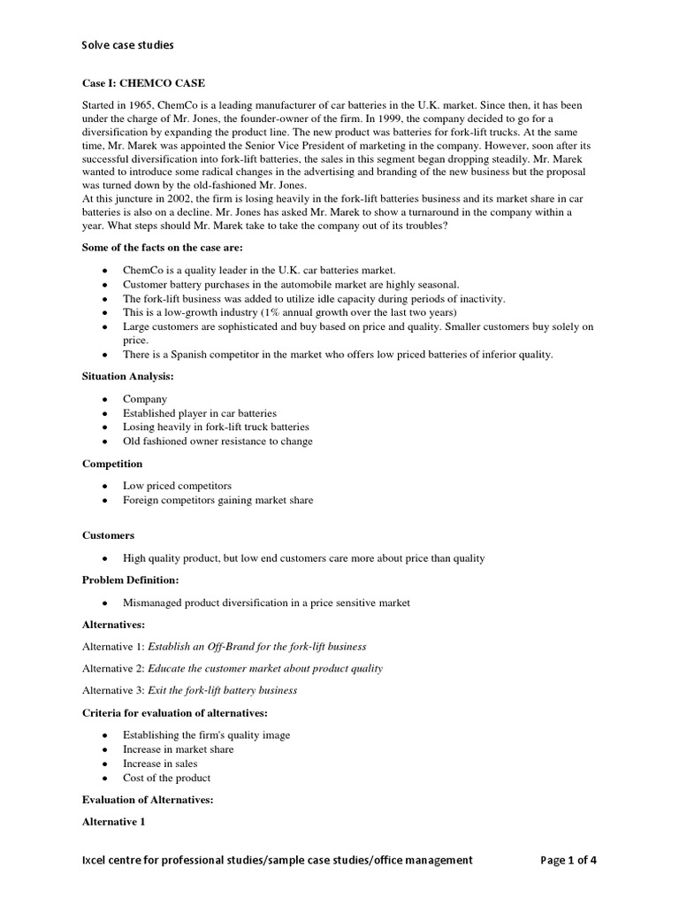 Ixcel centre for professional studies/sample case studies/office management Page 1 of 4
