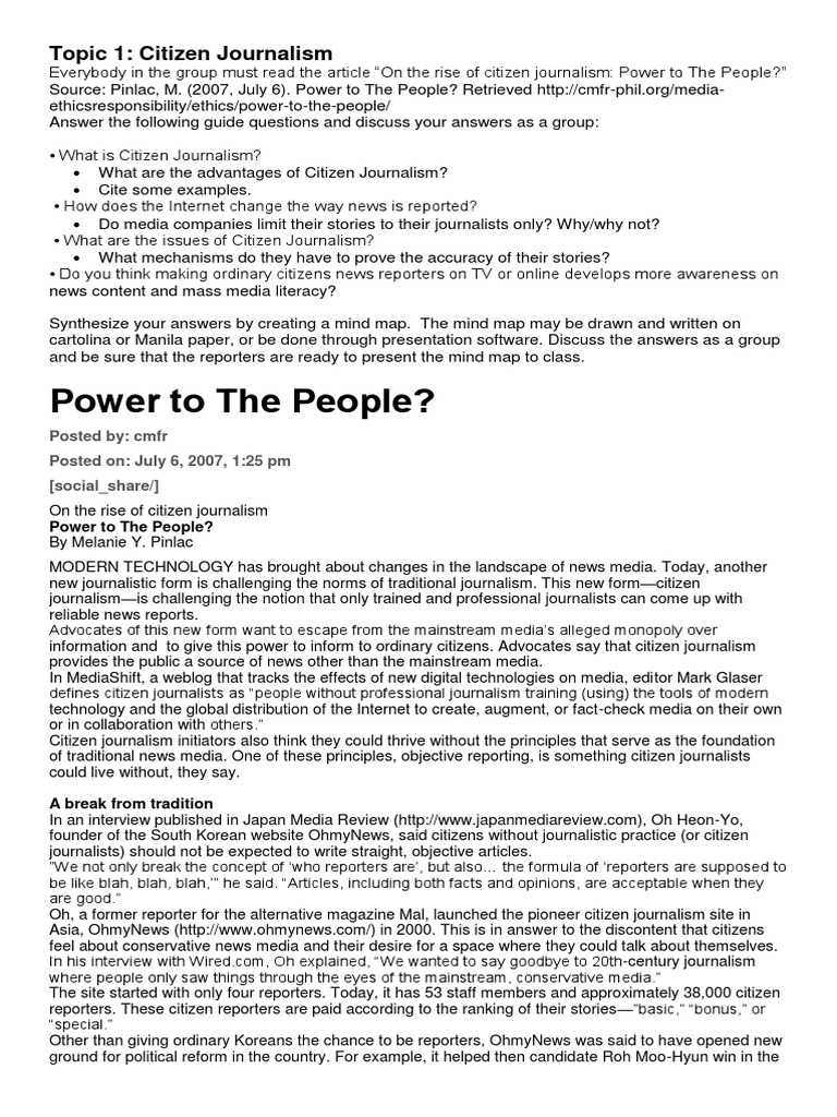 Everybody in the group must read the article “On the rise of citizen journalism: Power to The People?”