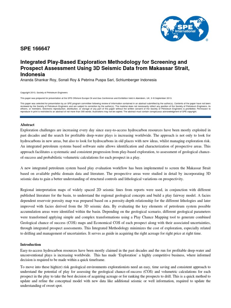 The paper illustrates the utilization of a systematic petroleum system based screening approach (Bryant et. al, 2012) to derive