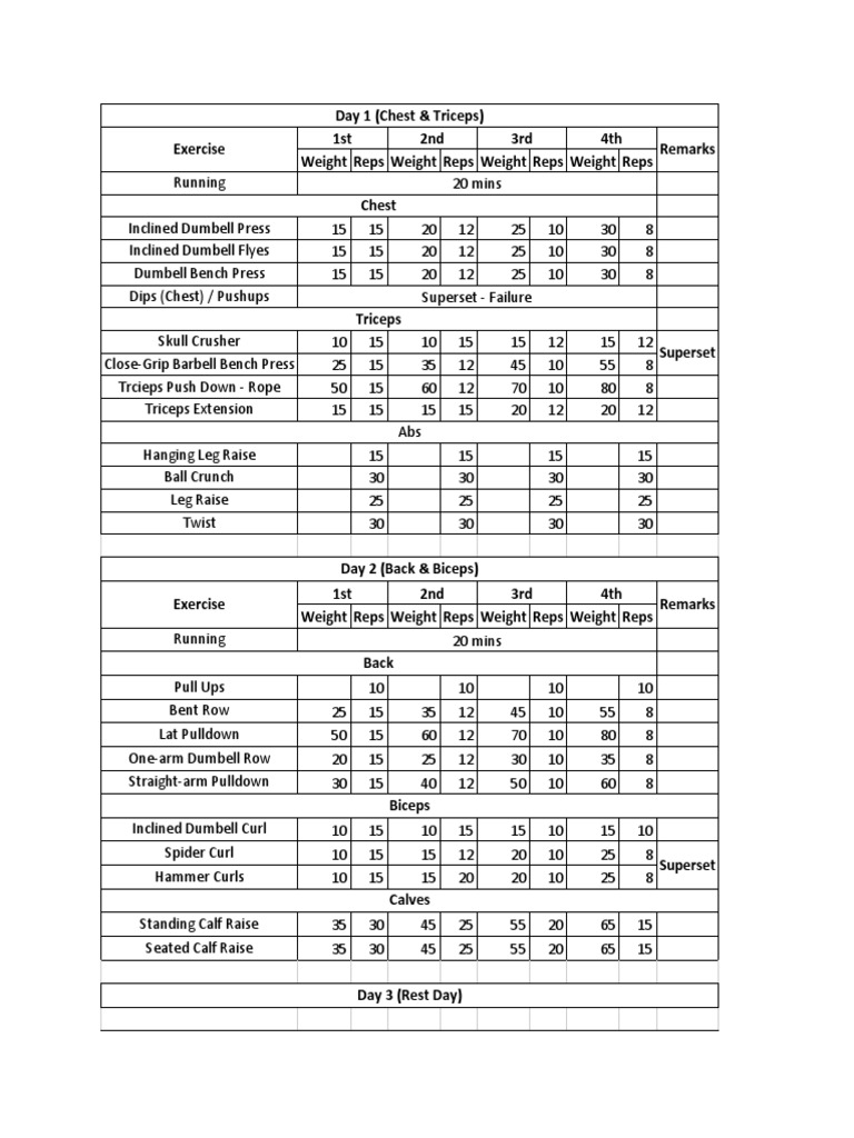 Inclined Dumbell Curl 10 15 10 15 15 10 15 10