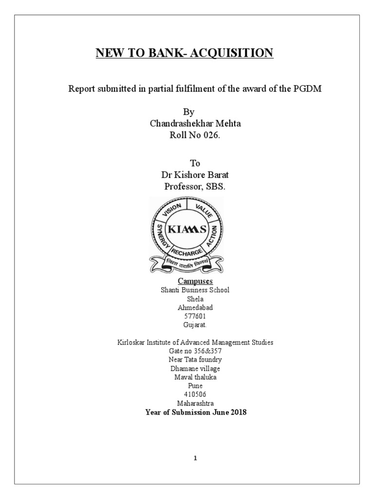 Acquisition” under the guidance of Mr Hemang Shah towards