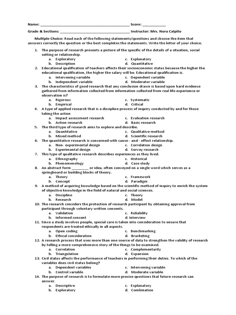 Grade & Sections: _________________________________ Instructor: Mrs. Nora Calpito