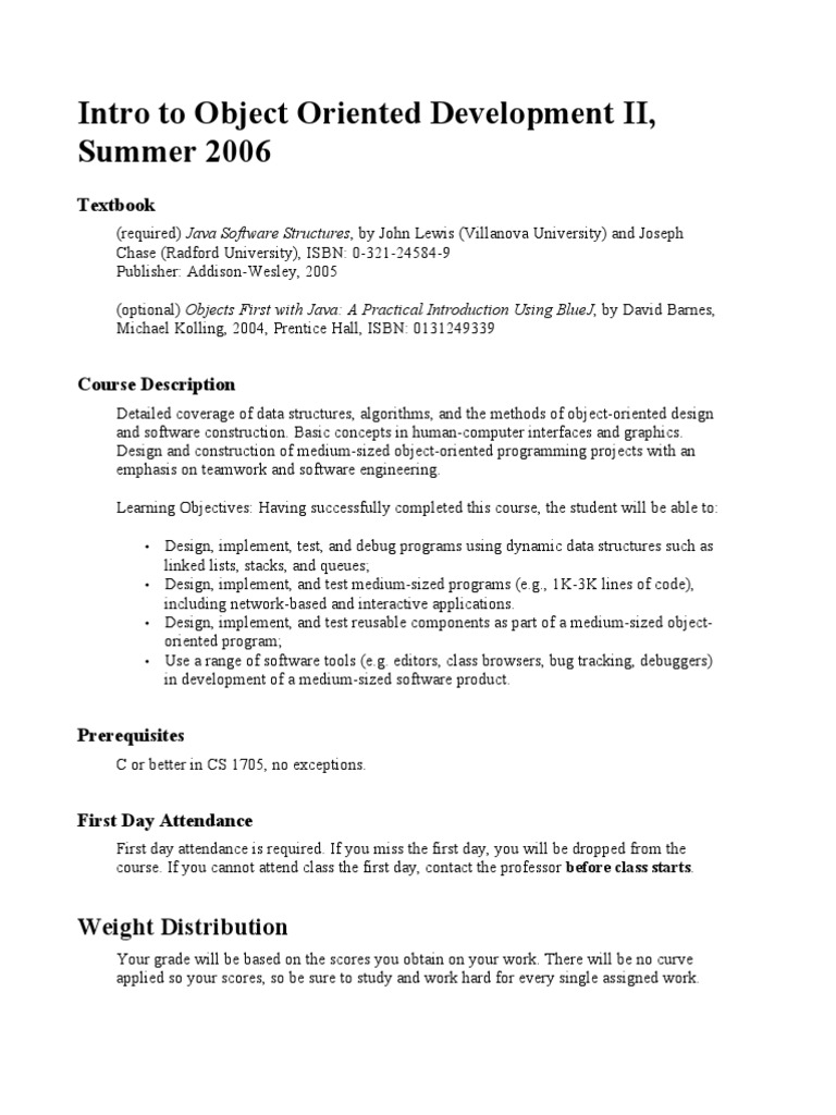 course. If you cannot attend class the first day, contact the professor before class starts.