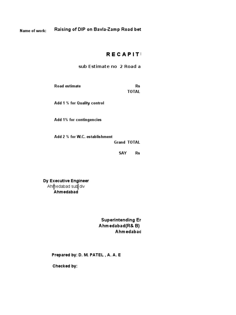 Name of work: Raising of DIP on Bavla-Zamp Road between Km 8/0 to 12/0