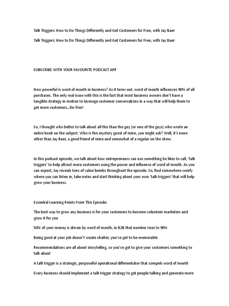 Talk Triggers: How to Do Things Differently and Get Customers for Free, with Jay Baer