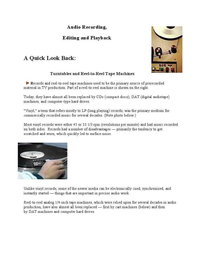 of broadcast technology used in earlier years. Today, audio is primarily recorded and played
