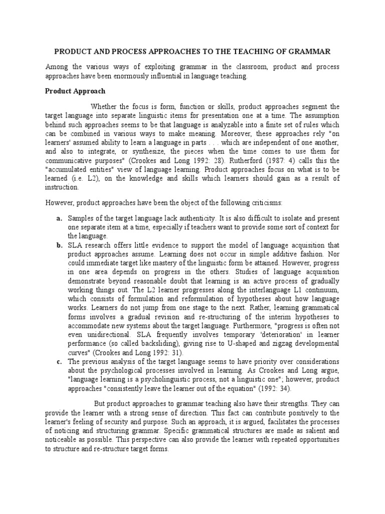PRODUCT AND PROCESS APPROACHES TO THE TEACHING OF GRAMMAR