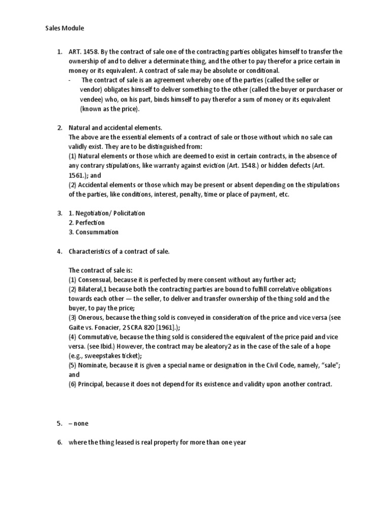 money or its equivalent. A contract of sale may be absolute or conditional.
