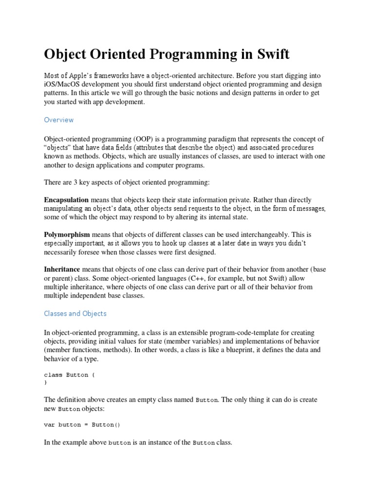 or parent) class. Some object-oriented languages (C++, for example, but not Swift) allow