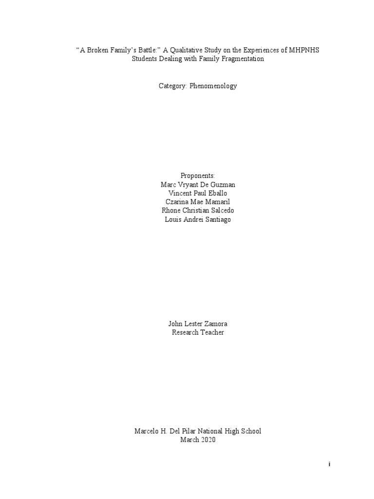 whole being [ CITATION Les17 \l 13321 ]. A broken family, in a broader sense, is a family