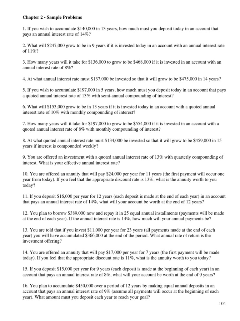 1. If you wish to accumulate $140,000 in 13 years, how much must you deposit today in an account that