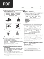 Exercise 1 : Use the sports in the list to fill in the boxes.