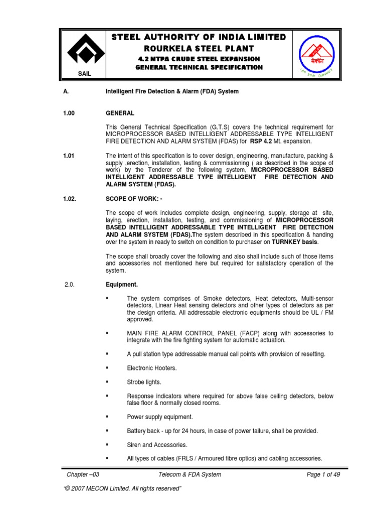 AND ALARM SYSTEM (FDAS).The system described in this specification & handing