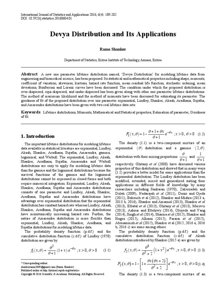 their important mathematical and statistical properties, and biomedical science and engineering. Shanker (2016 f) has