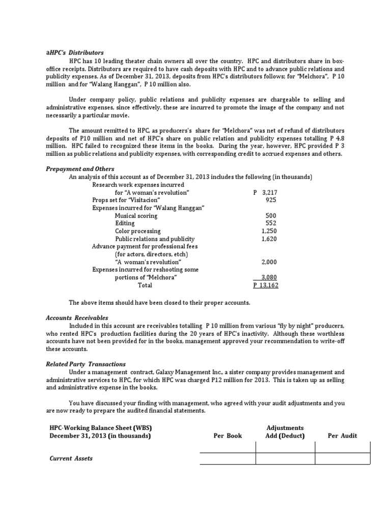 million. HPC failed to recognized these items in the books. During the year, however, HPC provided P 3