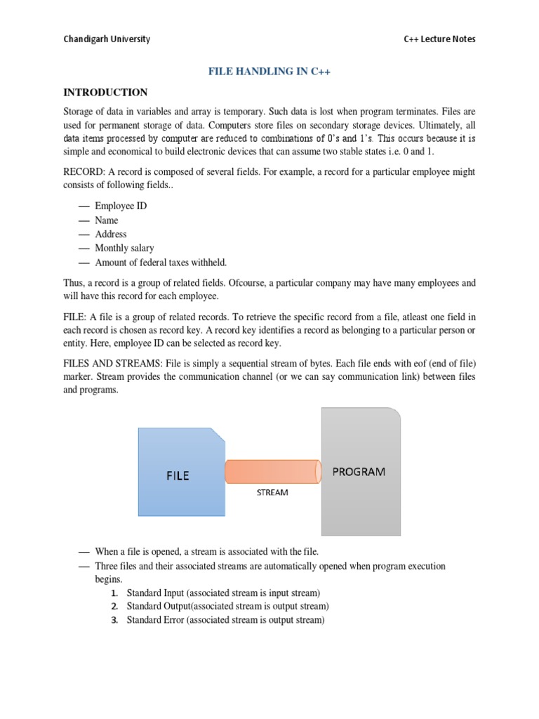 FILES AND STREAMS: File is simply a sequential stream of bytes. Each file ends with eof (end of file)