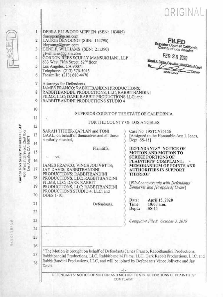 ' The Motion is brought on behalf of Defendants James Franco, Rabbitbandini Productions,
