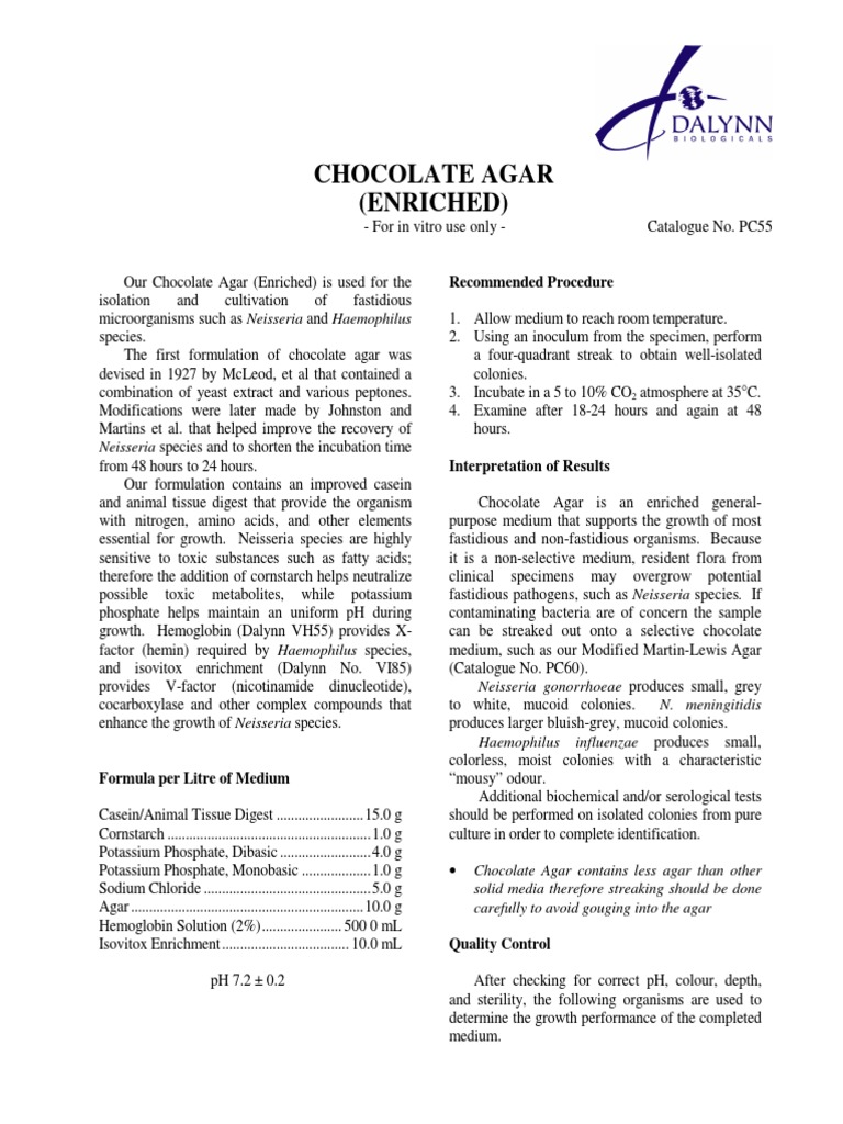 Our Chocolate Agar (Enriched) is used for the Recommended Procedure