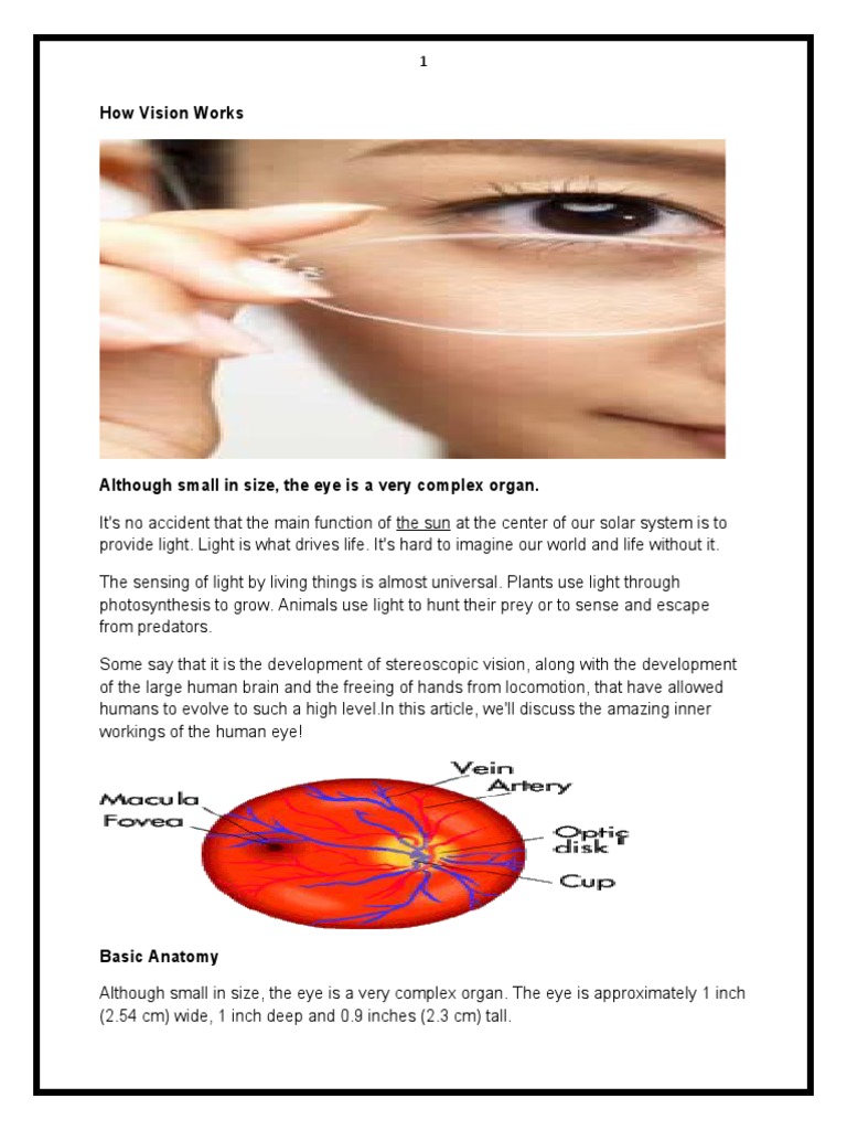 lenses. Now that you have learned some anatomy of the eye and how it functions, it