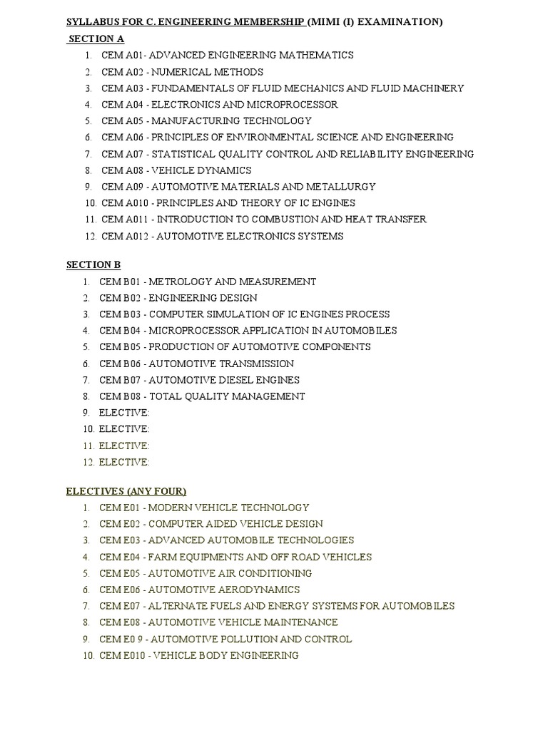 THE INSTITUTE OF MOTOR INDUSTRY (I) C. ENGINEERING MEMBERSHIP