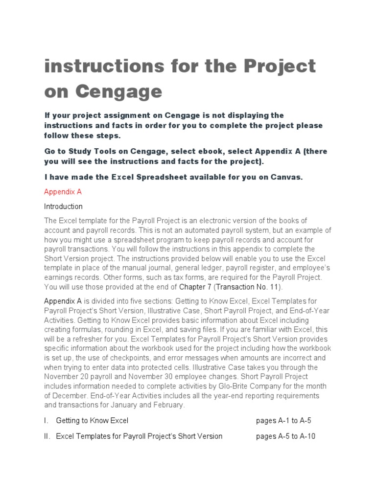 II. Excel Templates for Payroll Project’s Short Version pages A-5 to A-10