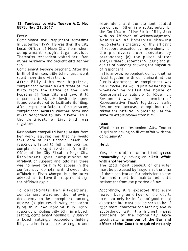 12. Tumbaga vs Atty. Teoxon A.C. No.