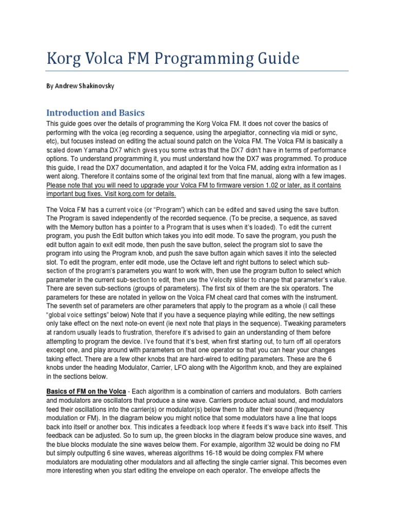 This guide goes over the details of programming the Korg Volca FM. It does not cover the basics of