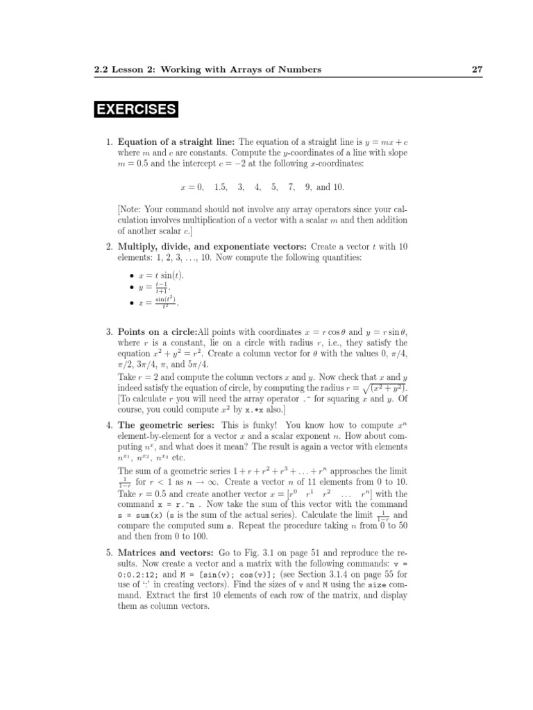 5. Matrices and vectors: Go to Fig. 3.1 on page 51 and reproduce the re-