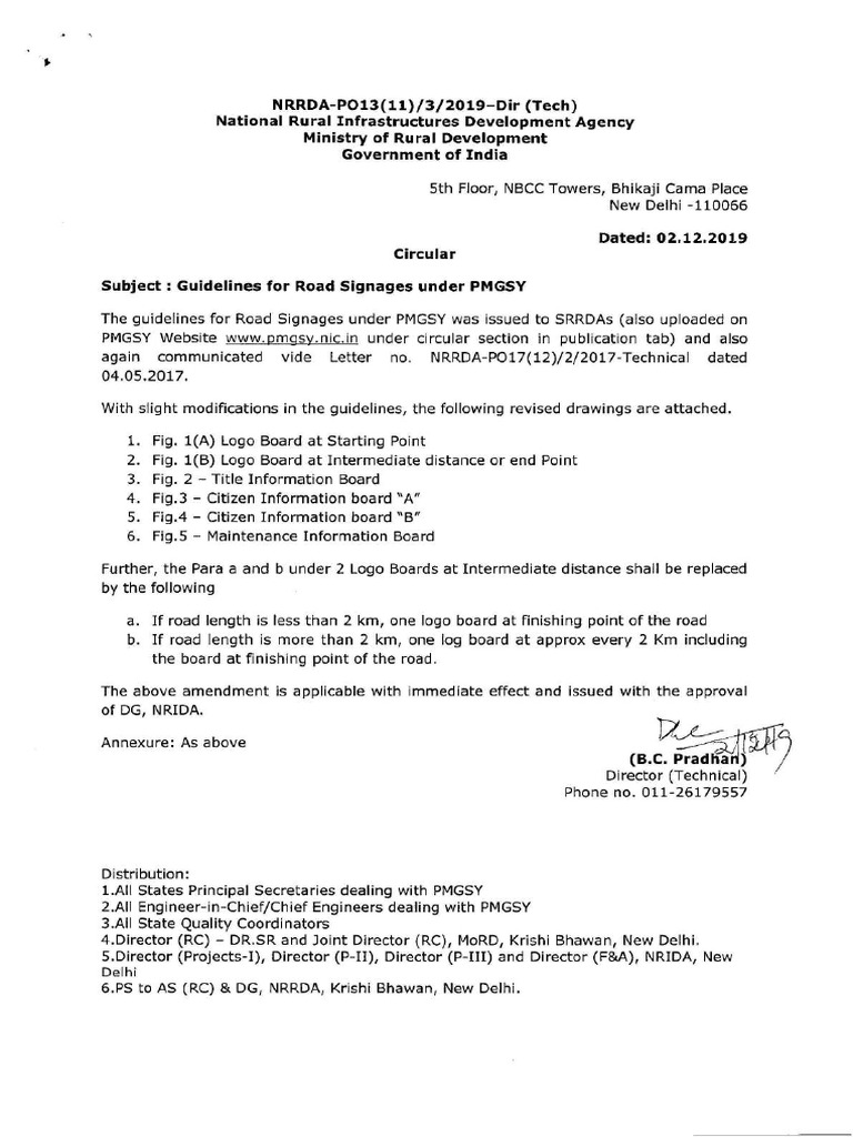 The guidelines for Road Signages under PMGSY was issued to SRRDAs (also uploaded on