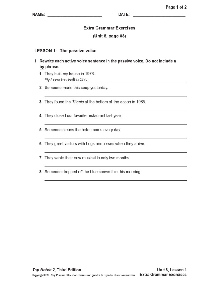Copyright ©2015 by Pearson Education. Permission granted to reproduce for classroom use. Extra Grammar Exercises