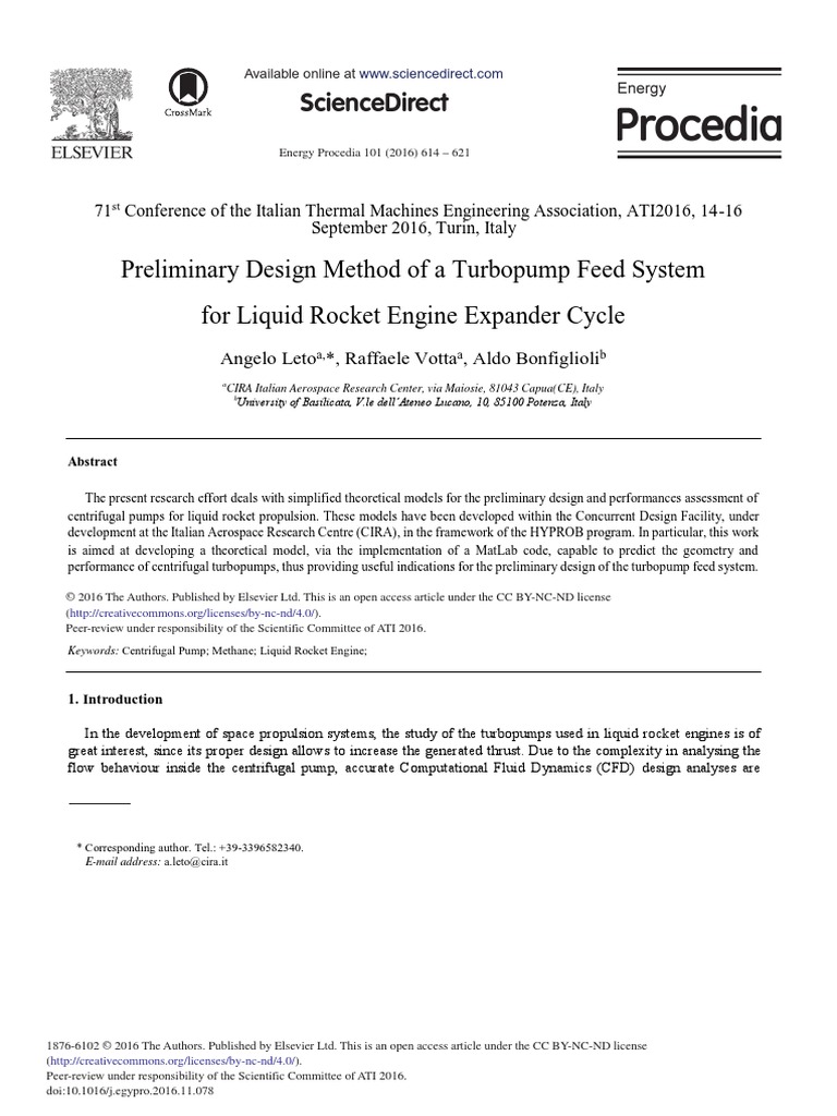 then it has been use for the preliminary design of the centrifugal pump of a Methane expander rocket engine.