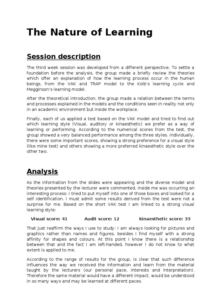 beings, from the VAK and TRAP model to the Kolb’s learning cycle and