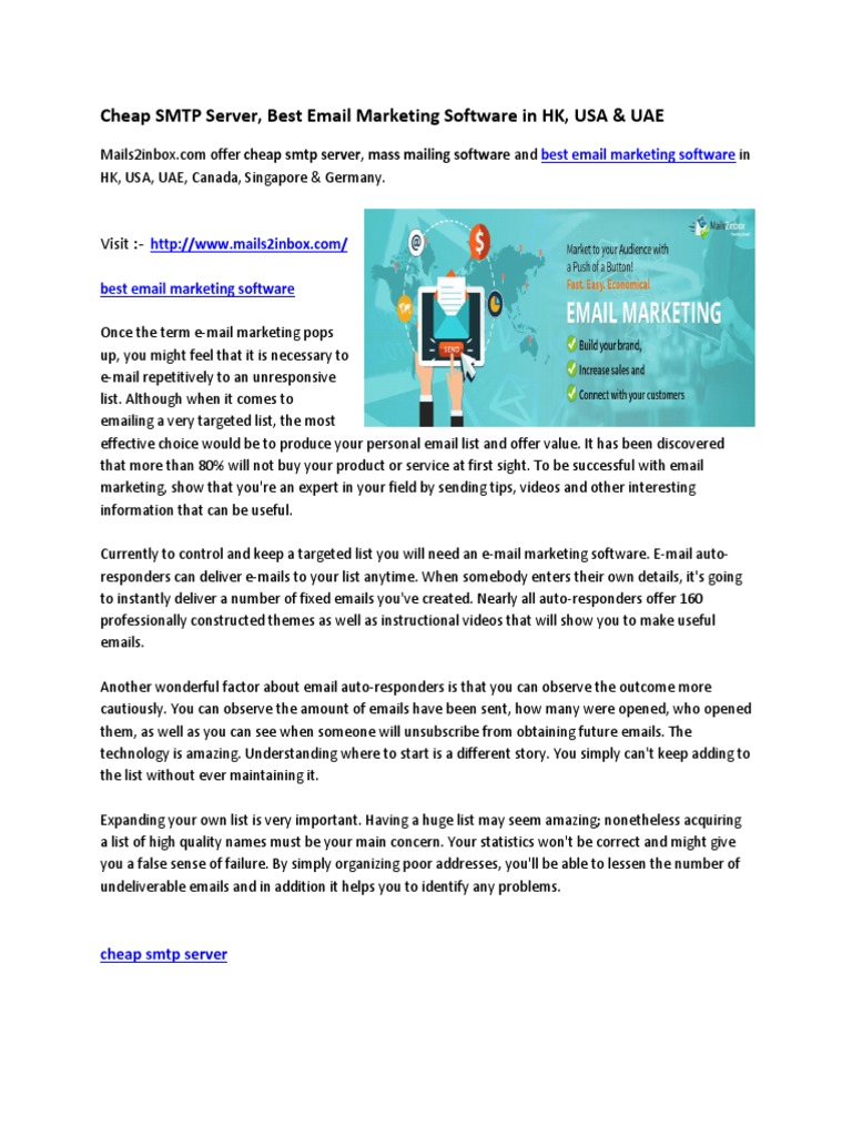 Cheap SMTP Server, Best Email Marketing Software in HK, USA & UAE